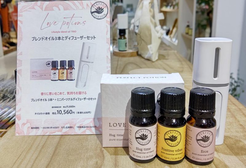 エッセンシャルブレンド3本セット+パーソナルアロマディフューザーを期間限定のセット価格にてご案内しております。