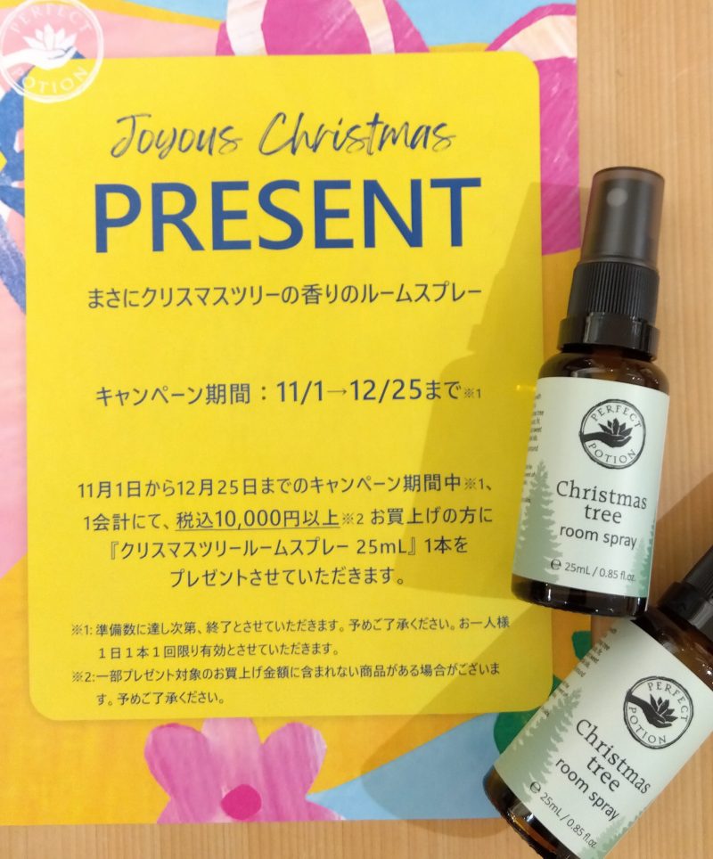『クリスマスツリールームスプレー』25ml(非売品)を1本プレゼント!