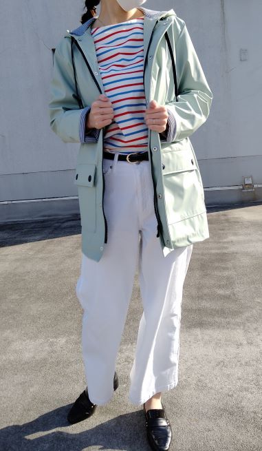 プチバトーのヨットパーカは撥水性があり、これから梅雨にかけて重宝する一枚です。