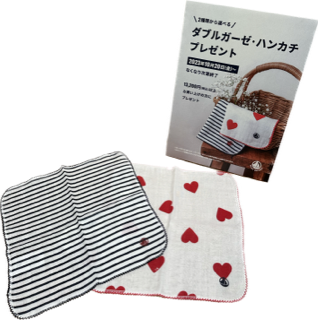 『ダブルガーゼ・ハンカチ』をプレゼントしております。