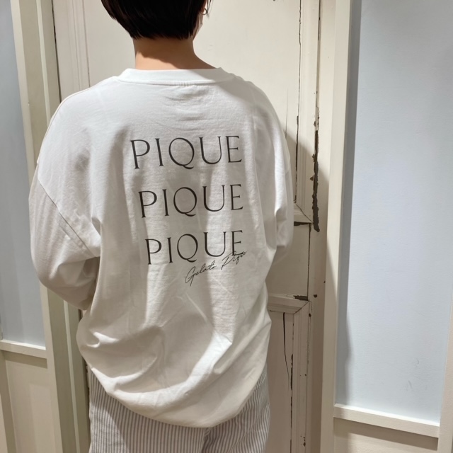 フロントはシンプルな無地、背中にPIQUEのロゴを大きくあしらったプルオーバーに、