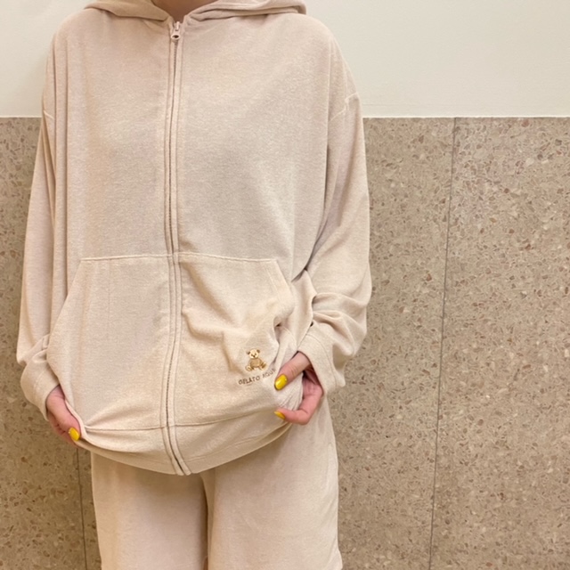 ふわふわの軽いタッチで幸せ気分になれる、オリジナルの“ベイビーブレス糸”を使ったパイル生地のパーカです。