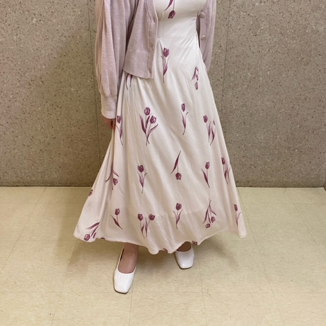 優しくフレアーに広がる裾がスウィートな気分にしてくれます。