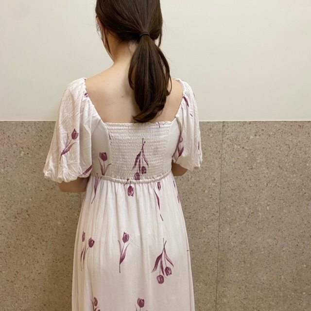 カップイン仕様だから1枚で着用OK。チューリップみたいなふんわり袖もガーリーな気分にしてくれます。