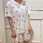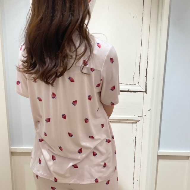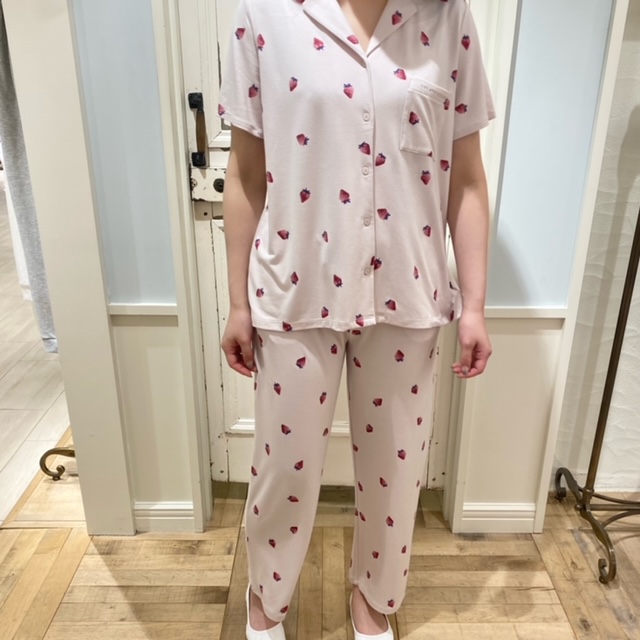 肌にとろんと寄り添うジューシーなストロベリー柄パンツ。