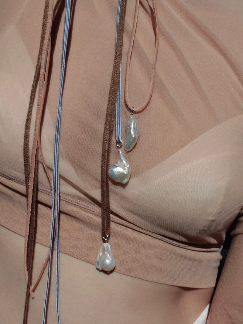お好きな形の淡水パールまたはハートモチーフのトップを、紐またはレザーに組み合わせて頂きネックレスをカスタムできる〈Pearl custom event>を開催。
