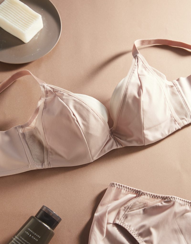 表生地の下に内蔵されたカップ脇布で、安定感のあるつけごこちです。