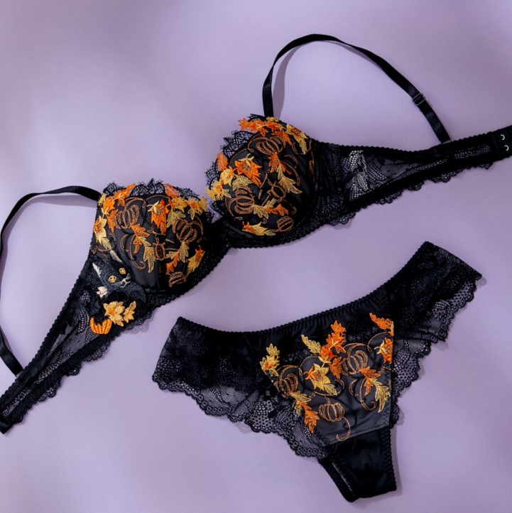 レースは魔女の薬草やかぼちゃをイメージし、ラメ糸を使用して魔法の世界を表現しています。