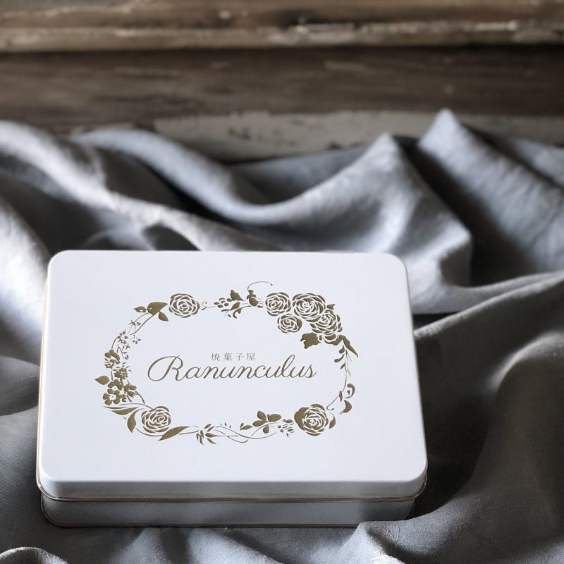 また、「焼菓子屋 Ranunculus」のロゴ入りクッキー缶が発売開始。