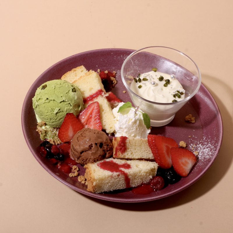 雪を思わせる濃厚なホワイトチョコレートのムースを、アイスやケーキ、ベリーと一緒に召し上がって頂くデザートプレートです。