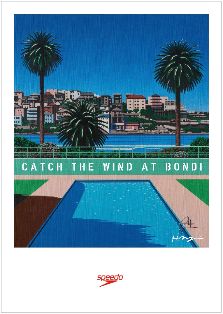 今回、永井氏が書き下ろしたイラストは、speedoブランドの発祥の地であるオーストラリアのボンダイビーチや、そのビーチにあるプールをイメージしたもので、speedoブランドの世界観とも共鳴しています。
