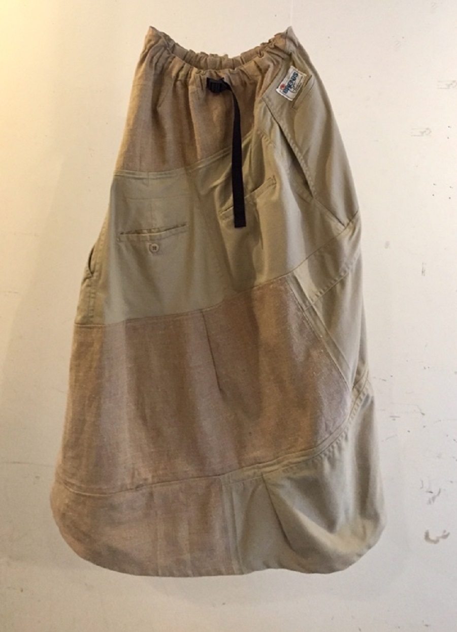 今季は、ズタ袋から着想を得たラセン状のスカートや、ミリタリーファブリックを使用したキルティングジャケットなどを中心に展開しています。