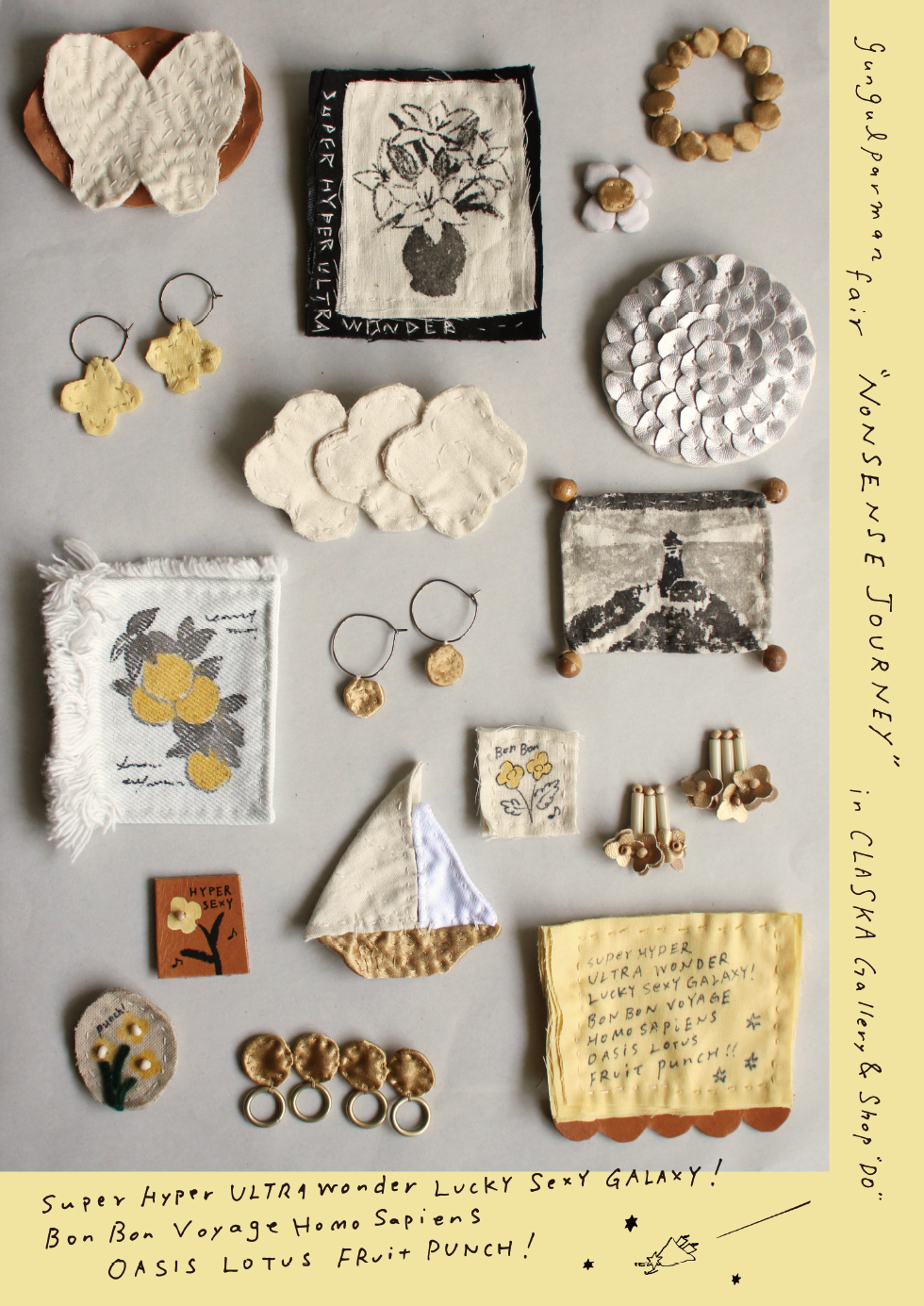 今年の夏から「gungulparman」は、デザイナー外山夏緒さんが美術活動の一環で制作した“NONSENSE JOURNEY(無意味な旅)”という“詩”をテーマに商品や作品を展開しています。