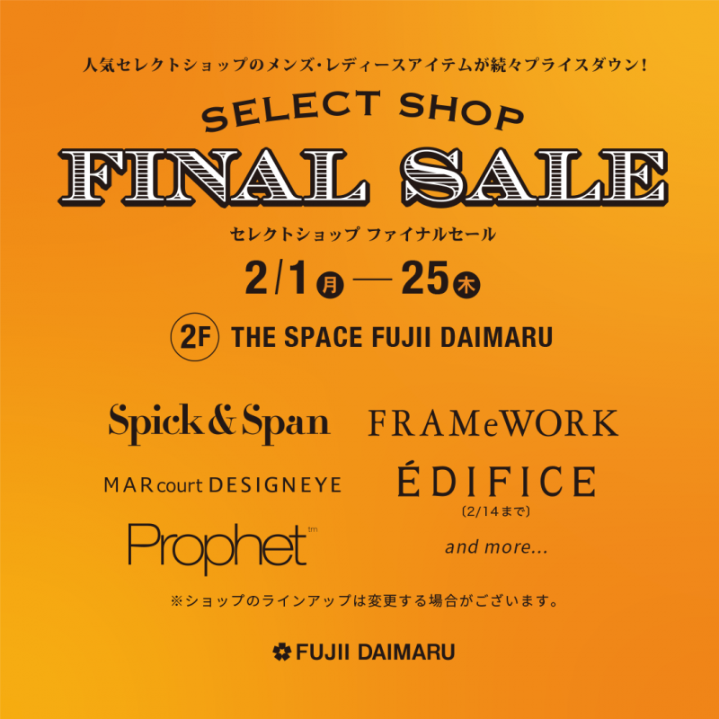 SELECT SHOP FINAL SALE 2月1日(月)~25日(木) 2F THE SPACE FUJII DAIMARU
