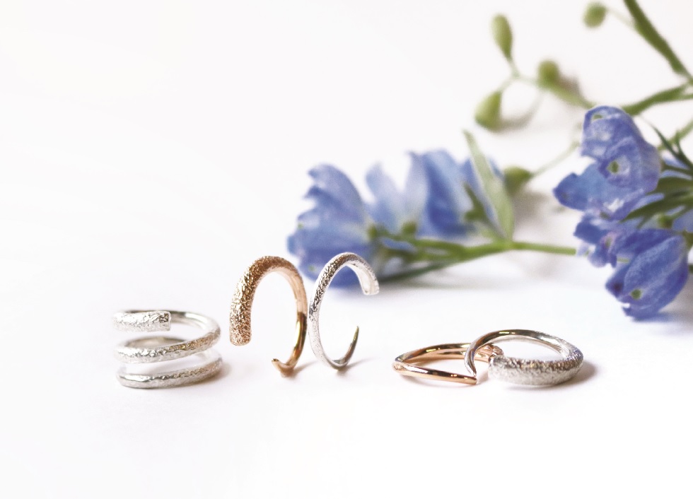 (左から)リング 27,500円 / リングS(K10ピンクゴールド) 34,100円 / リングS(SV) 11,000円 / リングS(K10ピンクゴールド) 34,100円 / リングL(SV) 15,400円