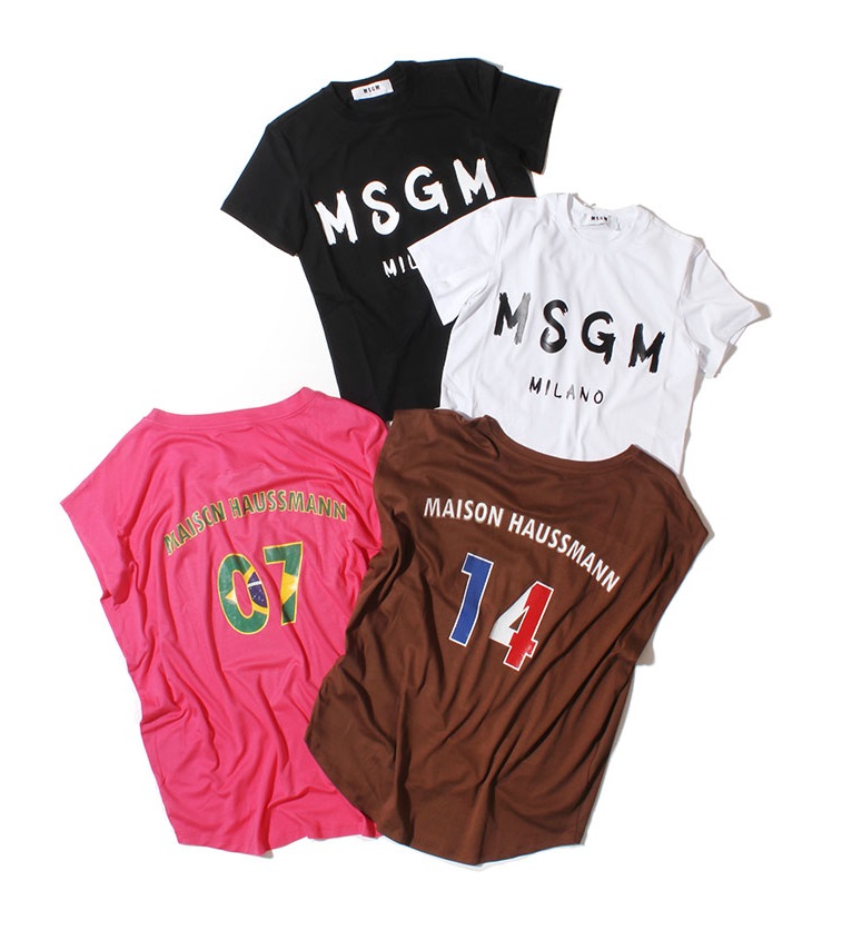 (上段)「MSGM(エムエスジーエム)」ブラッシュロゴ コットンTシャツ 各17,600円