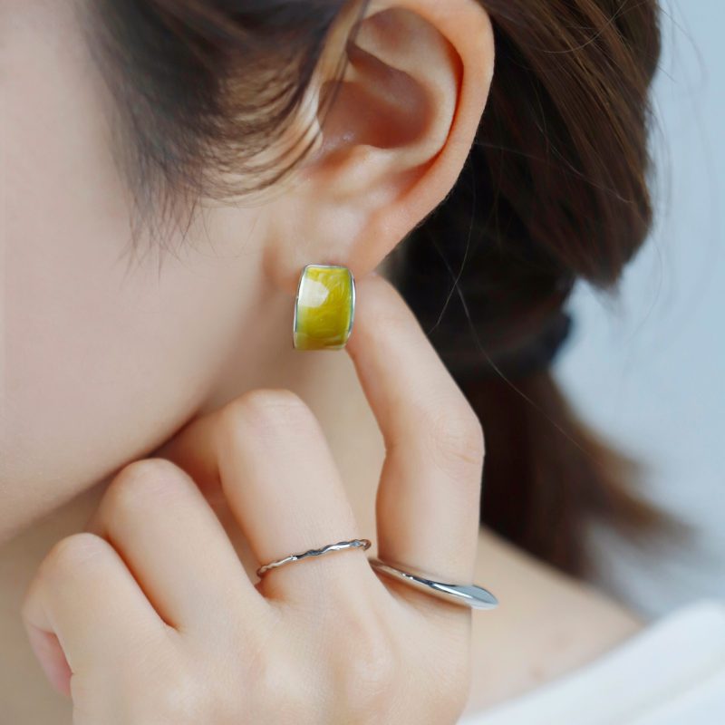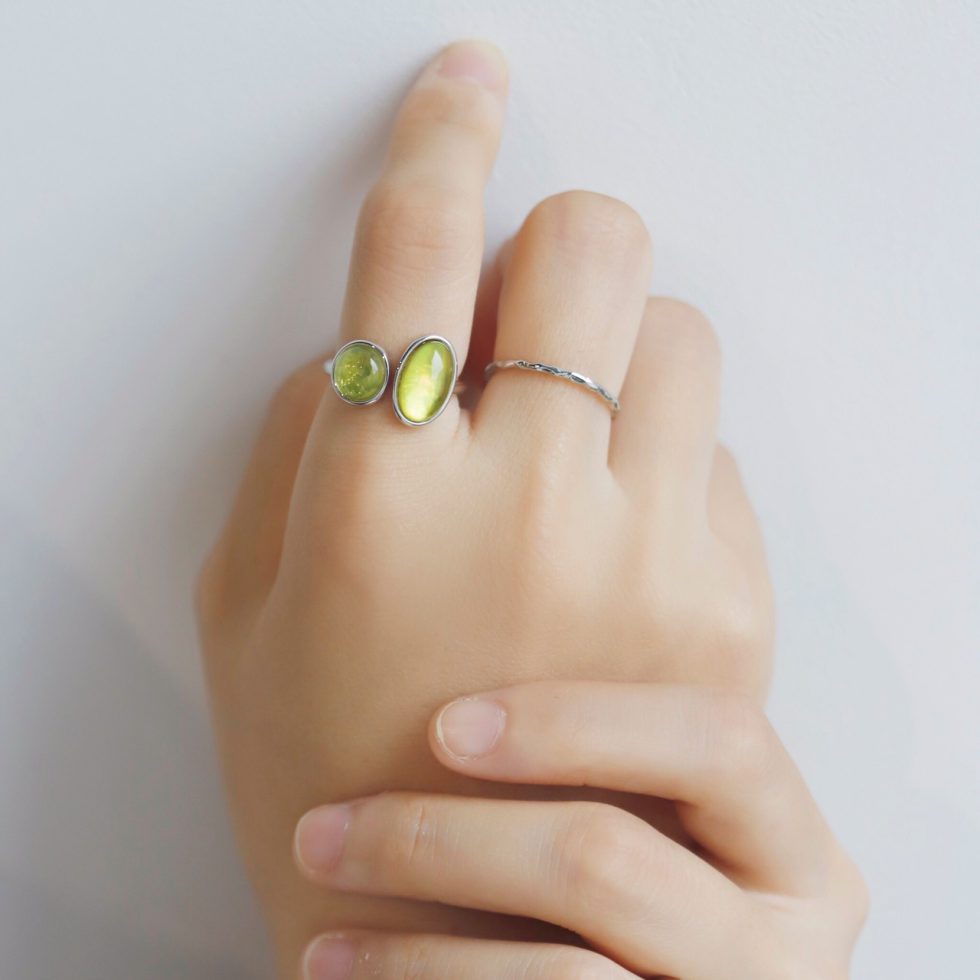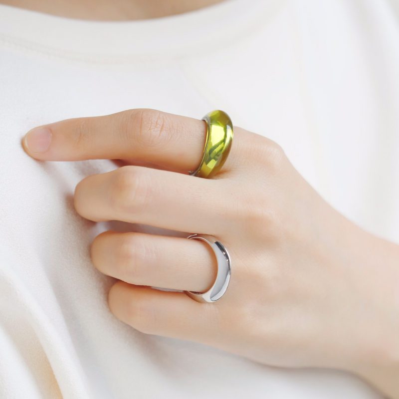 ダークカラーを選びがちな秋冬のコーディネートには、あえて爽やかなライムカラー×シルバーを合わせるのがおすすめ。