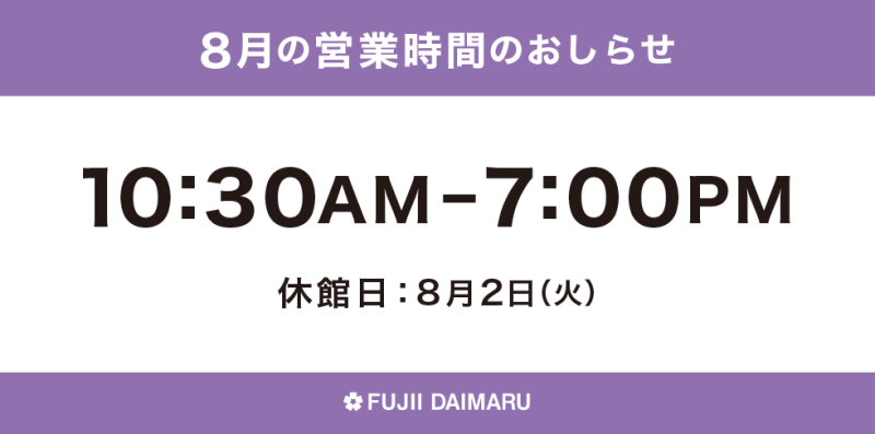 8月の営業時間のおしらせ