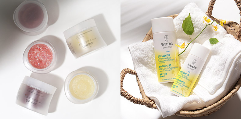 →UV対策はもちろん、化粧下地・保湿も叶えるオーガニック日焼け止めクリーム。植物エキスが乾燥ダメージを受けた肌をしっとりと包む込み、キメを整えます。