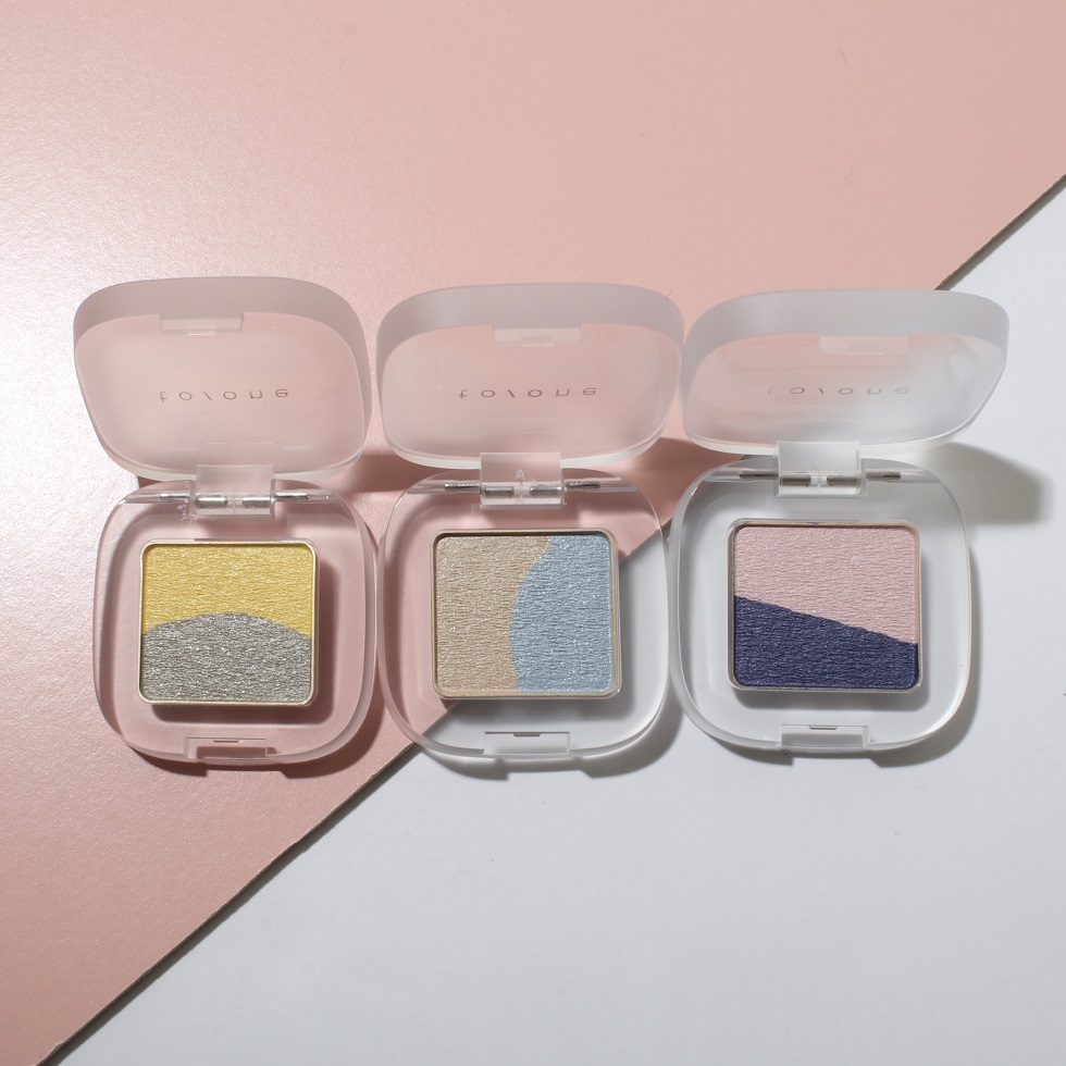 →鮮やかなコントラストカラーに、そよぐ風や揺れる陽光のような光感をレイヤード。柔らかくも芯をもつ人の、すがすがしさとユニークネスを表現したデュオアイシャドウ。