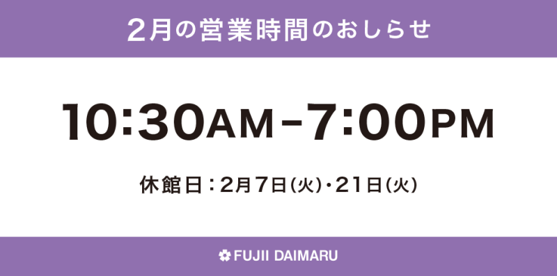 誠に勝手ながら、2月は営業時間を下記の通り変更させていただきます。